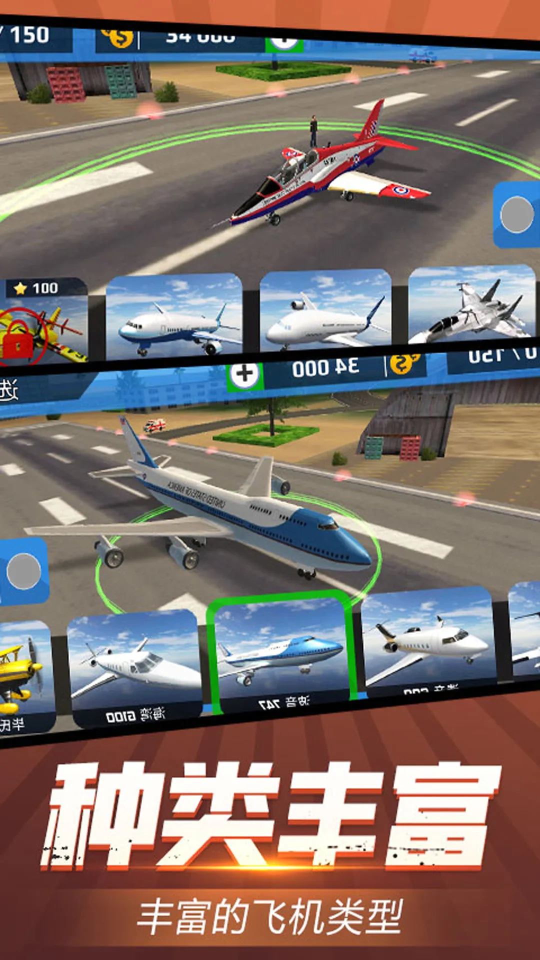 2、多样飞机类型,涵盖各航空公司常见机型,可驾驶最新飞机。
