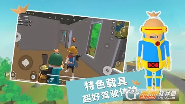 4、有丰富卡通载具,如直升机、钢铁机器人 。众多玩家反馈,游戏资源安全,玩法有趣,战场激烈能体验到刺激的战斗,还有多种武器和大地图探索,带来很棒的游戏体验。