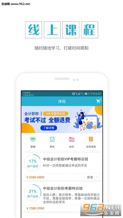 2、功能多样:有手机随时上课、在线报班、直播授课、随时练题、智能生成题库、离线下载等功能,学习方式灵活。
