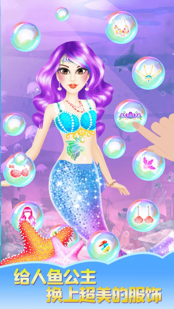 这是一款休闲换装手游。玩家需帮助人鱼公主进行护肤、化妆、发型设计及服饰搭配,以便她出席海底舞会。游戏提供海量精美服饰、饰品与多样玩法,操作简便,旨在让玩家发挥创意,打造独特闪耀的人鱼形象。