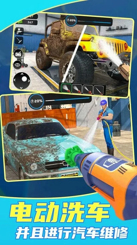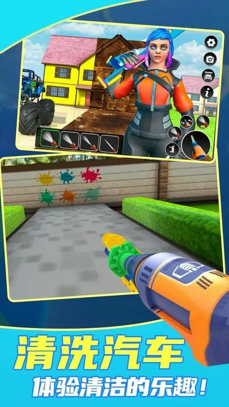 2、能自由选择趣味模式玩法,动动手指完成洗车体验。