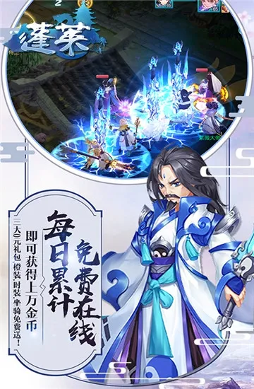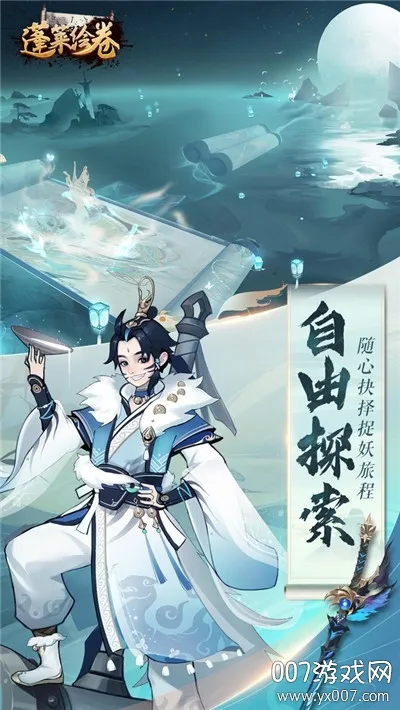3、国风画面享受:采用传统国风画面,以蓬莱仙岛为背景,营造出美轮美奂的神话仙境氛围,音乐动听。