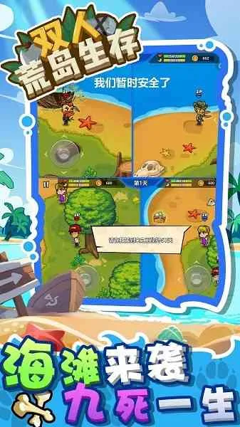 2、可与小伙伴组队冒险,双人合作在荒岛上搜集资源、等待救援,还能通过完成任务获取更多生存物资。