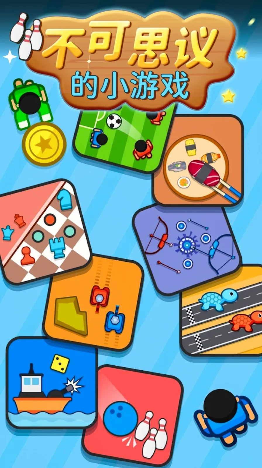 双人对战小游戏手游支持2 - 4人在手机屏互动比赛,也可单人玩。内置丰富小游戏,玩法简单易上手。无需联机,点击操作,能增进伙伴感情,还可解压放松。