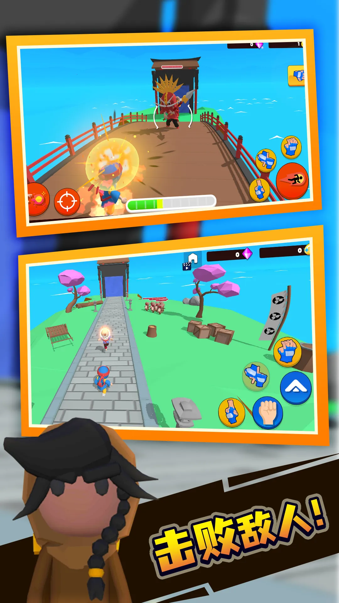 1、卡通忍者冒险:游戏为玩家带来卡通风格的忍者类冒险体验,玩家可以选择喜欢的忍者形象,在未知村庄中开启探索冒险之旅,化身为优秀的忍者刺客,被分配到遥远岛屿,保护村庄并探索外部世界。