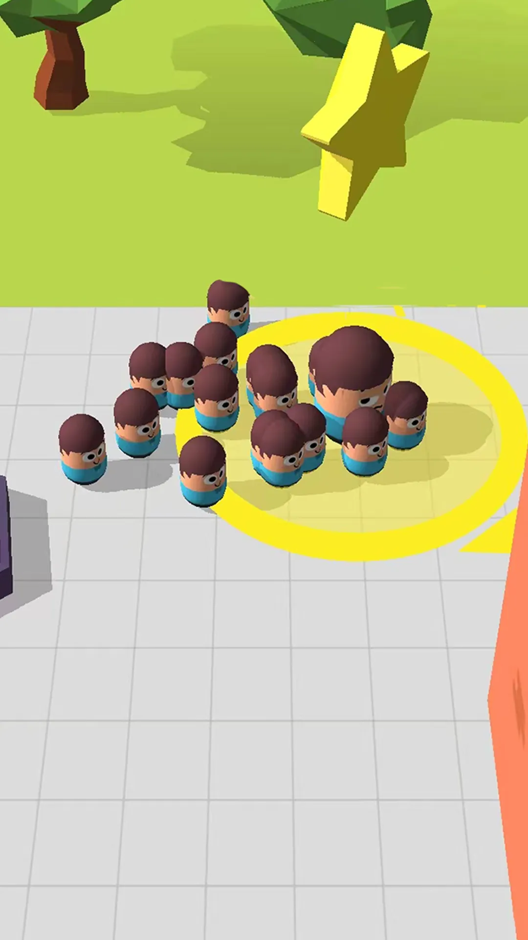 1、游戏采用鲜艳活泼的卡通画风,角色与场景设计诙谐有趣,大量单位同屏移动形成视觉冲击力强烈的人群浪潮,增强爽感。