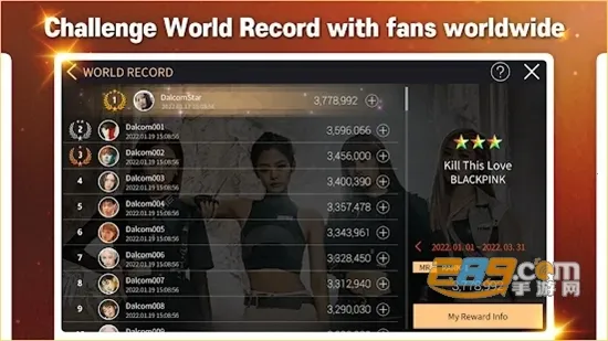 3、多样竞技玩法:每个季节可与世界各地的YG粉丝竞争世界纪录,尝试进入前100名;每周进行联赛,根据排名获取额外奖励,集齐主题、升级卡片后有机会获得更高分数。