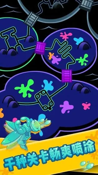3、喷涂屏幕乐在其中:收集并升级不同喷涂道具,击败源源不断入侵的泡泡怪兽,颜料飞溅快速融合,玩家可尝试升级完成任务。