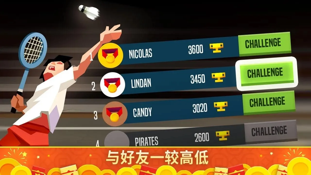 3、精美时尚的装备:精心设计的羽毛球配件及运动套装,不仅能让玩家自由搭配,还能引领球场时尚潮流。
