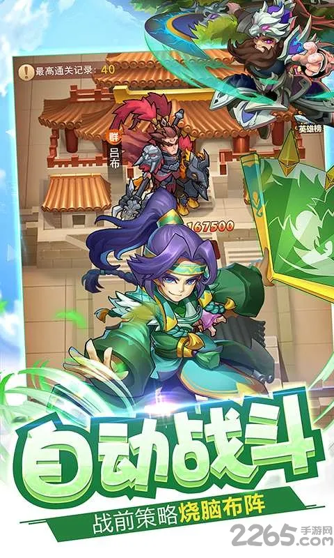 1、游戏以三国争霸为背景,画面q萌可爱,再现三国战争的恢弘场景,玩家能召唤武将、排兵布阵,体验攻城掠池、一统十三州的乐趣,还设有多种特色玩法,如历练系统、皇城守卫玩法等,玩起来充满热血感。