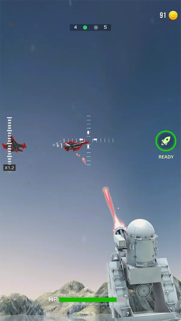 陆基密集阵炮台安卓版手机游戏中,玩家可拖动手指瞄准击落敌人、拦截威胁,为火箭充能发射对抗对手。需保卫陆空海,掌握瞄准技巧、制定策略护民,还有惊艳视觉与逼真音效。