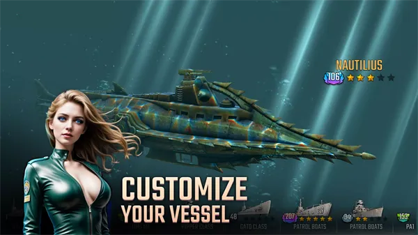 2、历史还原度高。精心还原了多款二战时期经典潜艇与军舰模型,忠实呈现历史舰船细节,丰富的历史舰船种类,还提供深度升级系统,每艘舰艇都有独立升级路线,强化后能发挥独特战力。