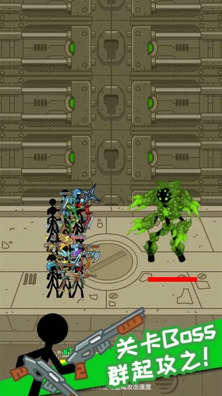 3、多种武器可自由搭配组合,显著增强火柴人战斗力。游戏融合放置玩法与策略射击,拥有多种独特能力,还能用金币解锁不同武器辅助战斗。
