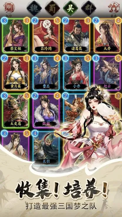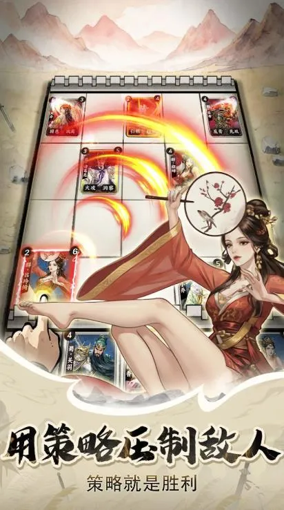 2、三国名将阵容:以三国名将为核心,玩家可自由收集名将,组建属于自己的梦幻阵容,让熟悉的角色在战棋格子中以全新形式登场。