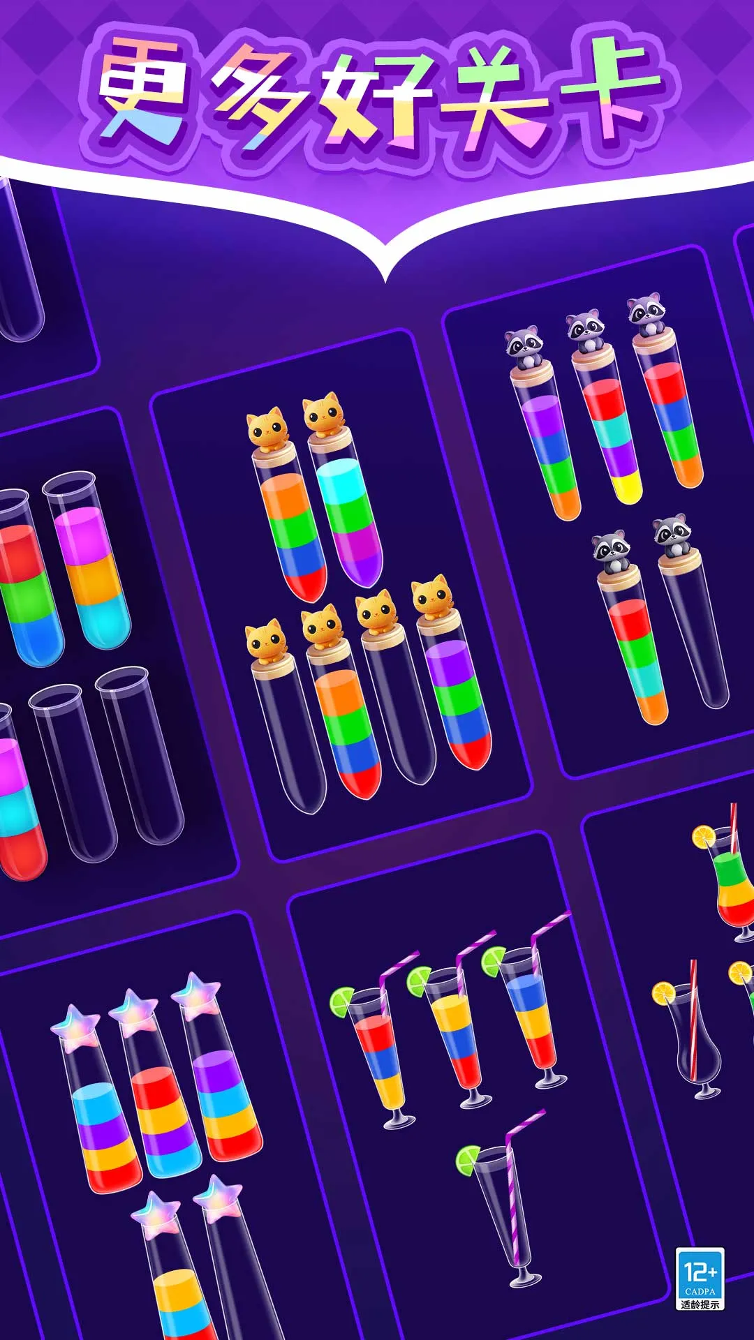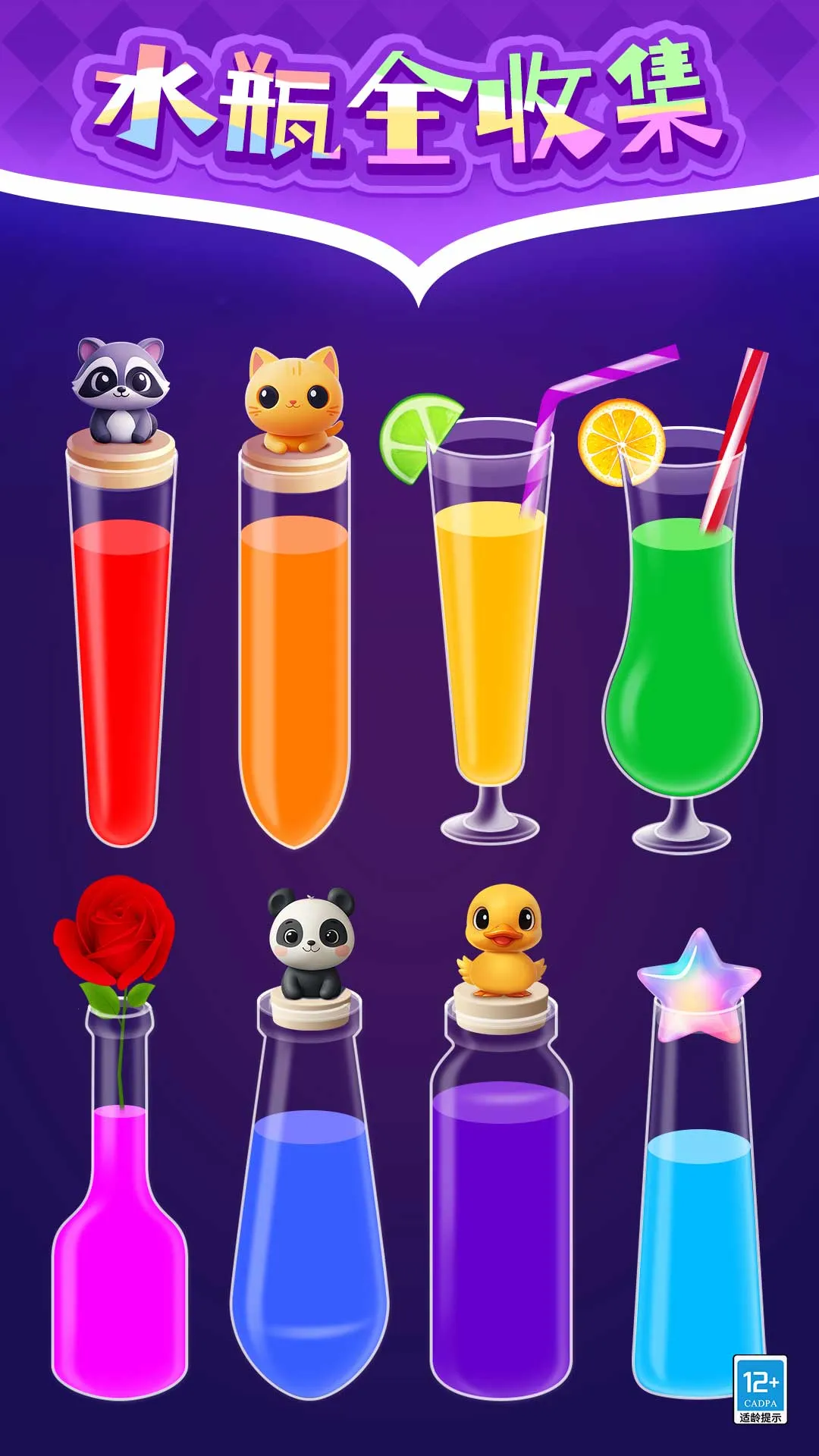 它能解决你休闲时光无聊、想锻炼思维的问题。游戏包含数百个创意关卡,难度逐渐提升,能自然引导你提升分液技巧。操作上采用直观的拖放与倾倒,还提供无限制撤销功能,减轻解谜压力。而且游戏的液体物理效果逼真,有真实流动轨迹与水面涟漪,成功通关还有澄澈动画与提示音效。形态各异的容器让分类过程有丰富策略变化,还有多款容器皮肤可解锁。喜欢安静思考的休闲玩家可别错过。