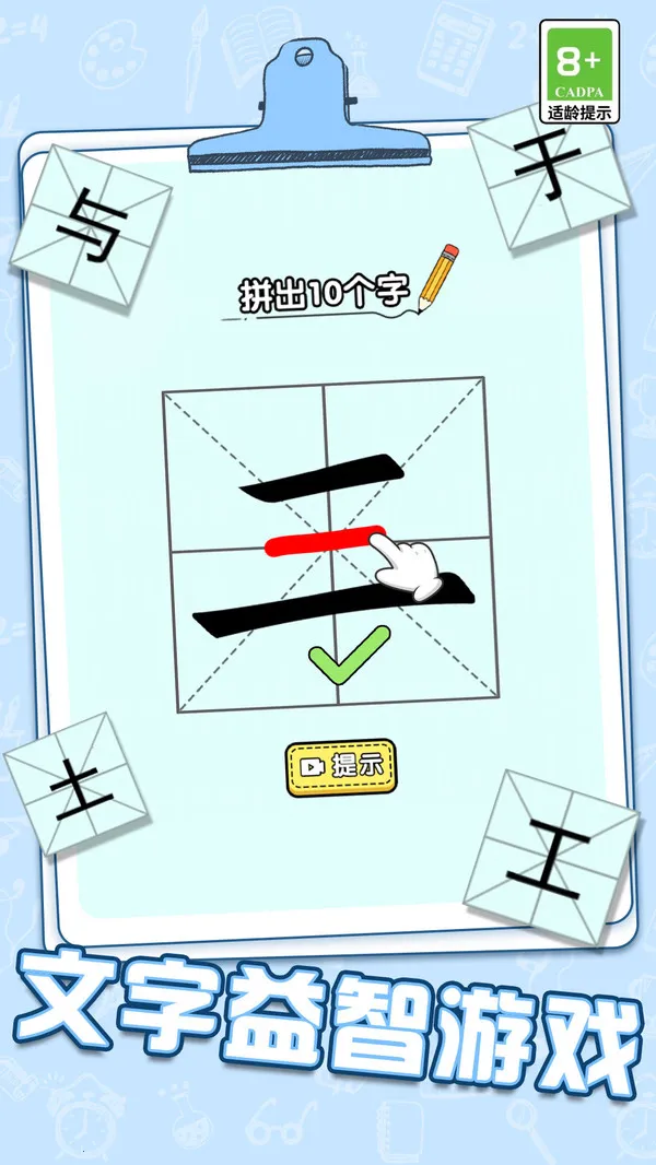 4、体验轻松愉悦:操作简单,通过触摸屏幕选择文字,新手也能快速上手。画面简洁,文字显示清晰,没有多余干扰元素,适合碎片时间玩。成功找出目标汉字时的清脆音效和视觉反馈,以及解锁新玩法模式的生动演示,都带来满满的成就感和期待感。