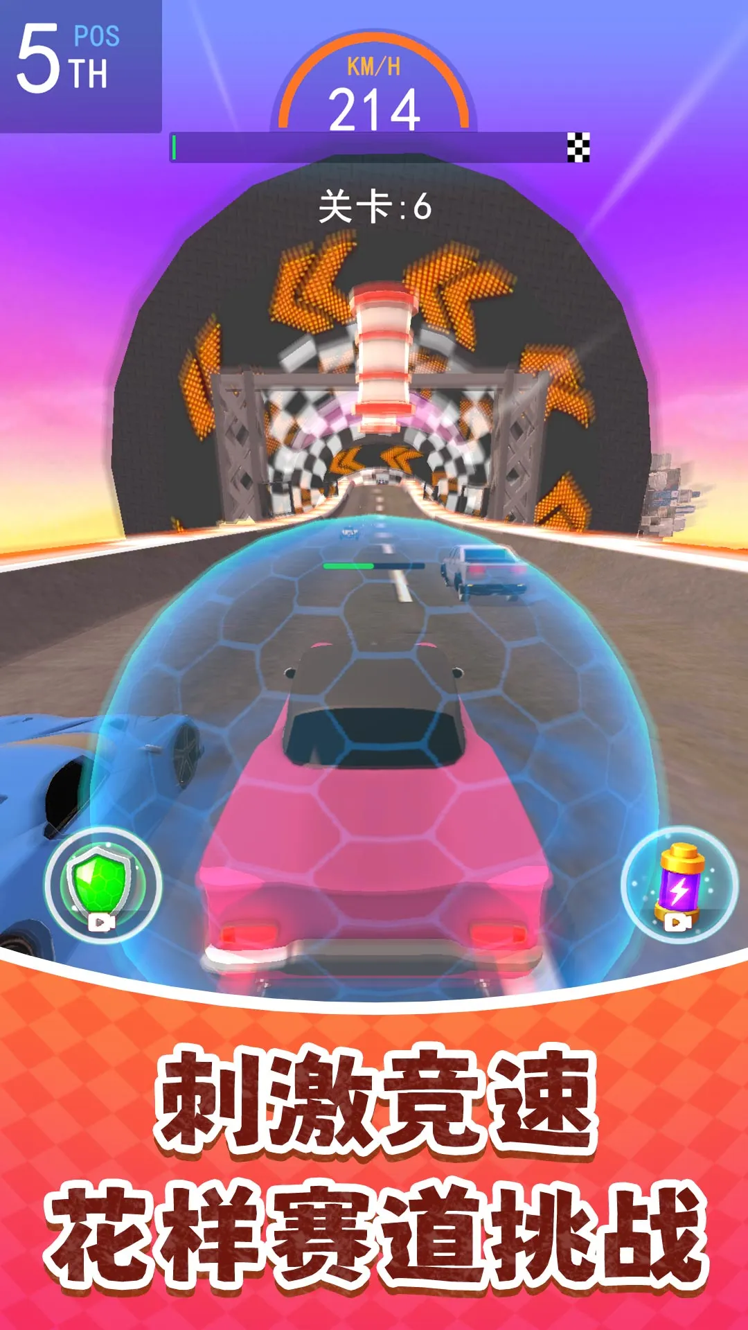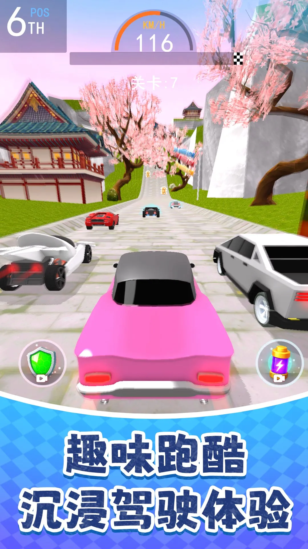 2、赛道风格多样且充满挑战,有复杂弯道、特殊地形,部分赛道还有捷径或动态障碍,难度随赛事推进逐步提升,兼顾新手与核心玩家需求。