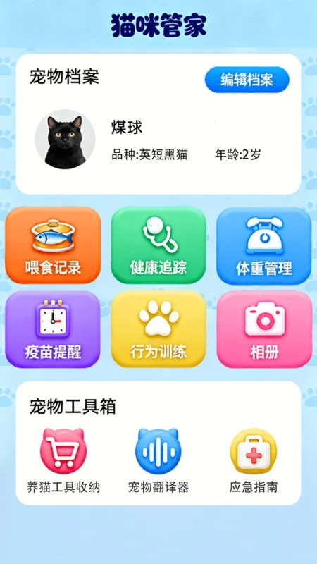 2、实用的猫咪管家功能,可记录猫咪饮食、健康、行为等成长点滴,方便主人管理猫咪生活,更好地照顾其健康。