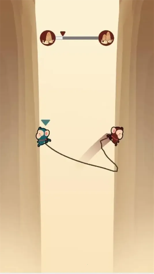 1、专为好友或情侣打造,玩家在游戏中会被弹性绳子绑在一起,需紧密配合走过危机重重之路,十分考验默契度,成功与失败都由两人共同承担。