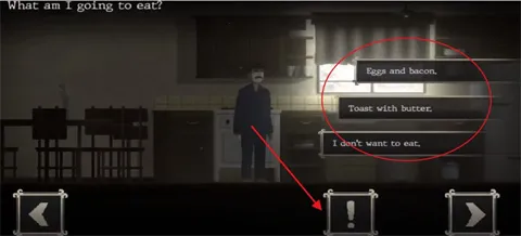 2、玩法上,初始要学会操控人物左右移动,头上灯泡为任务提示;进入新场景到厨房,点击感叹号可选择食物;还能依据左上方提示做任务,通过对话和关键决策互动。