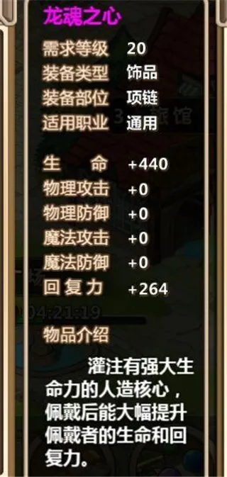 龙魂之心制作所需材料:较小的魔石×13,铁矿石×5,黄铜×2,3600金币