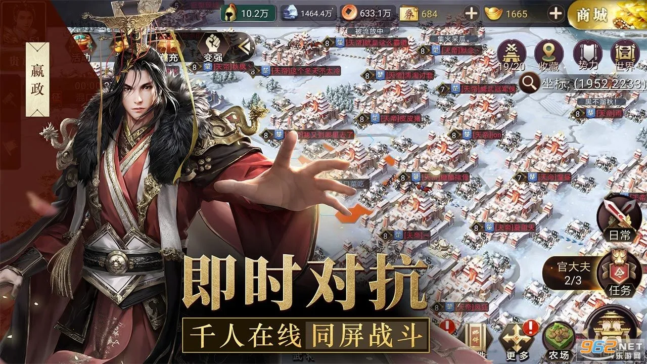 游戏玩法丰富,有城池建设提升国力,还能根据步弓骑车器相克原理排兵布阵。在策略布局上,组合不同职业和技能流派的武将,能让战斗更有胜算。比如你可以前排放防御高的武将扛伤害,后排安排输出强的武将攻击。