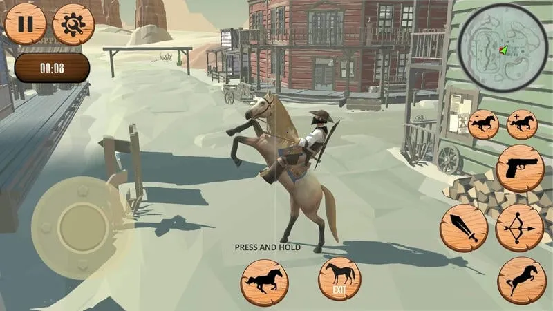 游戏采用精美3D技术,呈现出充满美式风情的写实画风,搭配多样化的挑战模式,让你仿佛置身于19世纪的美国西部。你可以驾驭马匹穿梭各处执行任务,在枪火对决中磨练技艺。通过完成特色任务,还能在商店解锁进阶武器,进一步提升自己在西部的地位。